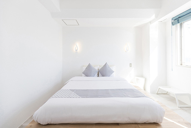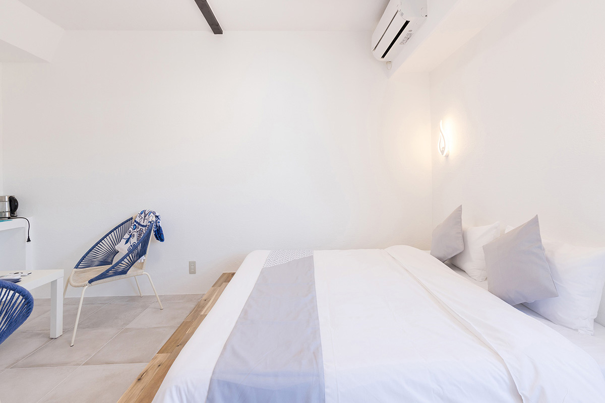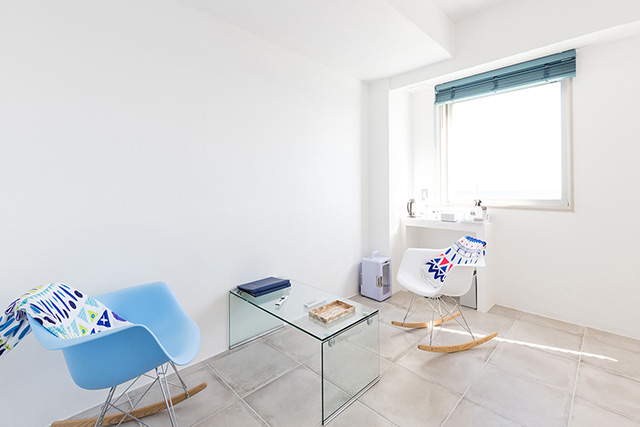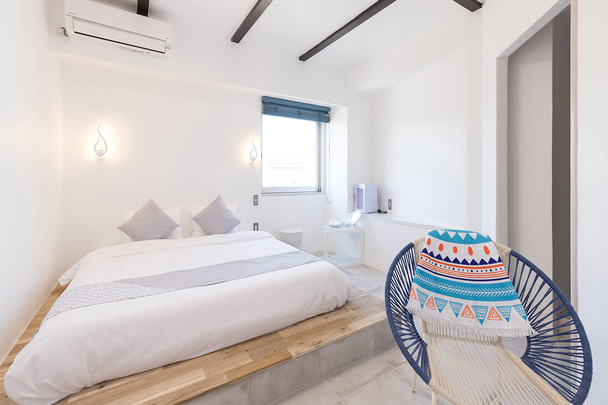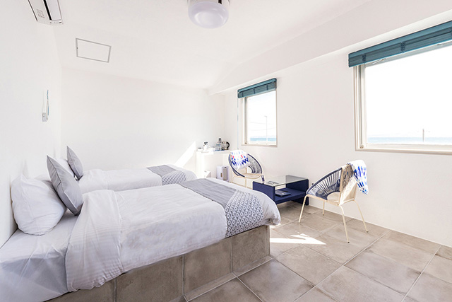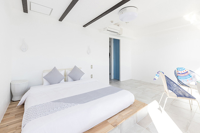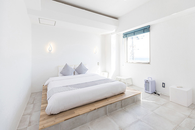 OceanView2階のお部屋はベットに横たわり海が見えるよう床を30cm上げております。