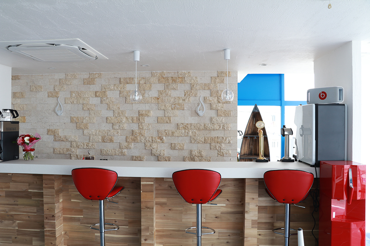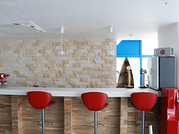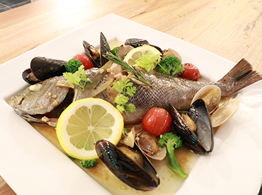 海を望めるテーブル:8席 半個室:2席 お子様用チェアー3席 お子様用食器をご用意しております。
